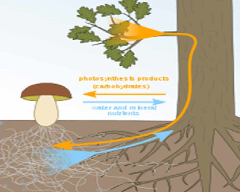 The diagram above illustrates how the hyphae of the mycorrhizal fungi interweave with tree roots